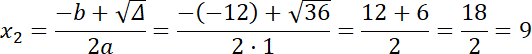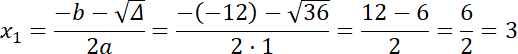 ∆ = b2 – 4ac = (–12)2 – 4 · 1 · 27 = 36