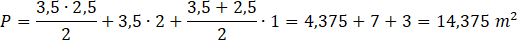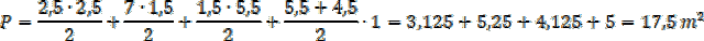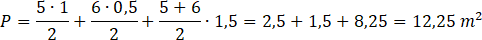 Podziel figury na mniejsze części, oblicz ich wymiary w rzeczywistości, a następnie oblicz ich pola. Zwróć uwagę na skalę planu- długość boku kratki odpowiada 0,5 m w rzeczywistości.