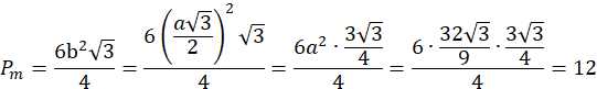 Wyznacz wartość kwadratu boku większego sześciokąta. Długość boku mniejszego sześciokąta to promień okręgu wpisanego w większy sześciokąt: