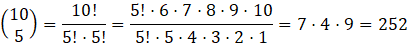 Aby obliczyć, ile podzbiorów pięcioelementowych istnieje w zbiorze 10 – elementowym, oblicz wyrażenie