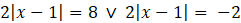 – Pierwsze równanie Rozwiąż ponownie, dzieląc je na przypadki. Drugie równanie jest sprzeczne, ponieważ wartość bezwzględna z definicji jest nieujemna.