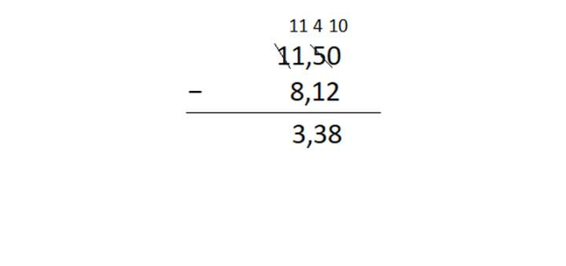 W tym zadaniu musisz obliczyć sposobem pisemnym różnicę liczb 11,5 i 8,12.