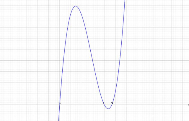 . Mając te dane, możesz naszkicować wykres wielomianu. Współczynnik przy najwyższej potędze wielomianu jest dodatni, zatem wykres zacznij rysować od góry od prawej strony. W miejscach zerowych wykres przetnie oś, ponieważ wszystkie pierwiastki są nieparzystokrotne: