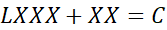 Aby otrzymać C, z dodawania, musisz do liczby mniejszej od C dodać tyle, o ile pierwsza liczba jest od C mniejsza. W tym wypadku pięć cyfr X możesz podzielić na grupę dwóch i trzech, z których jedna musi znaleźć się w zapisie przy L po prawej stronie.