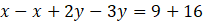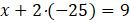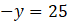 Z pierwszego równania obliczamy x podstawiając za y liczbę –25