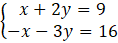 Przy zmiennej x mamy przeciwne współczynniki, czyli możemy obustronnie dodać do siebie obie strony równań:
