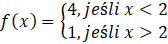 Funkcja przyjmuje wartość 1 dla argumentów większych od 2 oraz dla argumentów mniejszych od 2 przyjmuje wartość 4.
