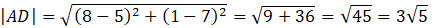 , gdzie a jest długością odcinka między dwoma punktami, którą obliczamy ze wzoru