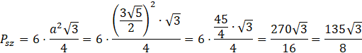 Sześciokąt foremny składa się z sześciu trójkątów równobocznych. Pole sześciokąta foremnego obliczamy ze wzoru