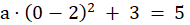 Wiedząc, że wierzchołkiem paraboli jest punkt (2, 3), zapisz wzór funkcji. Wiedząc, że wykres przecina oś Y w punkcie (0, 5) oblicz wartość współczynnika a.