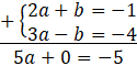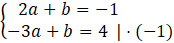 Ten układ równań najszybciej rozwiążesz z metody przeciwnych współczynników. Zauważ, że aby po dodaniu stronami skrócił się b, to wystarczy przemnożyć drugie równanie (lub pierwsze) przez -1.