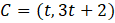 Zauważ, że zmienna t pojawia się jedynie we współrzędnych punktu C. Więc możesz jednoznacznie wyznaczyć prostą która przechodzi przez punkty A i B, a następnie tak ustalić t, by punkt C także należał do tej prostej.