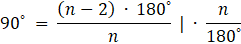 Oblicz, ile boków ma wielokąt foremny o mierze kąta wewnętrznego równej 90˚.