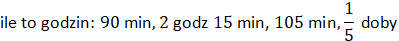 Wiedząc, że w godzinie jest 60 min, a w jeden dobie są 24 godziny, przedstaw podane wielkości jako ułamki zwykłe, a następnie dziesiętne: