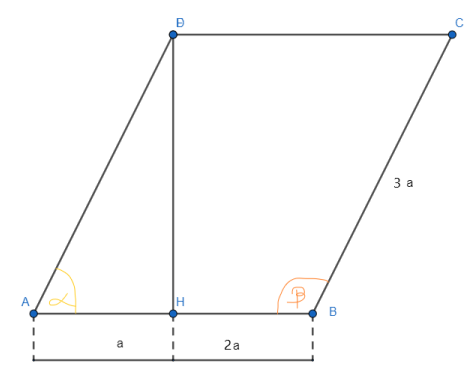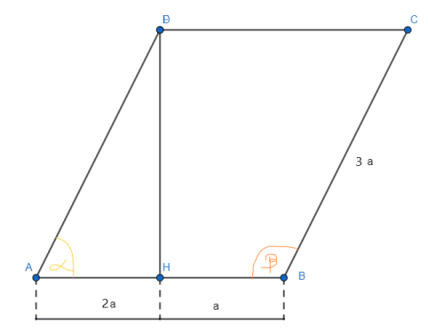 . Rozważ dwa przypadki. Pierwszy, kiedy bok rombu ma długość 3a i |AH| = a, |HB| = 2b. Drugi, kiedy bok rombu ma długość 3a i |AH| = 2a, |HB| = a.