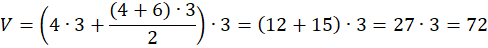 Zauważ, że podstawą graniastosłupa jest pięciokąt, który można podzielić na prostokąt i trapez, a następnie wykorzystaj wzór na objętość graniastosłupa: