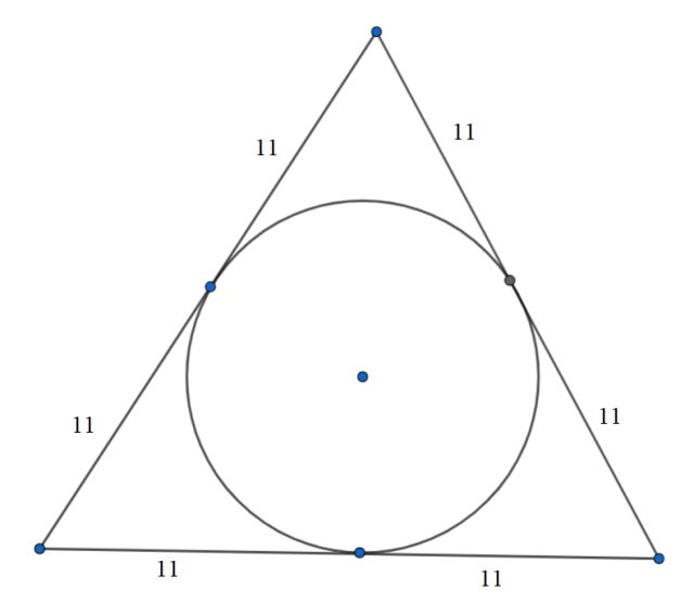 W tym zadaniu oblicz obwód trójkąta przedstawionego na rysunku wiedząc, że boki tego trójkąta są styczne do okręgu.