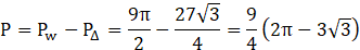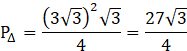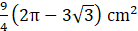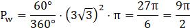 Wylicz powierzchnię niebieskiego obszaru, wiedząc że ABC to trójkąt równoboczny o boku długości 6.