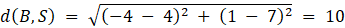 Nierówność koła o środku w punkcie S i promieniu r to: