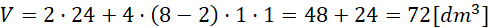 Wykorzystaj wynik z poprzedniego podpunktu, przemnóż razy dwa i dodaj do niego objętości „krawędzi” bocznych.