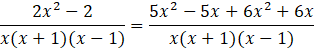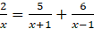 Doprowadź ułamki do jednakowych mianowników, rozwiąż równanie i sprawdź, czy wyniki należą do dziedziny: