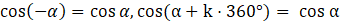Wykorzystaj wzór cos (α+k⋅360°) = cos α do odnalezienia pozostałych kątów: