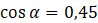 Wiedząc, że cos α = 0,45 oraz 0° < α < 360°, określ wszystkie możliwe wartości α.