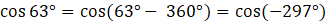 Kąt -297° nie spełnia warunków, ale możemy go użyć do obliczenia kolejnego kąta:
