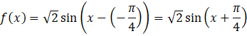 Dane są funkcje f i g określone wzorami: f(x) = sin x + cos x, g(x) = sin x – cos x. Przedstaw je w postaci: y = a sin(x – p).