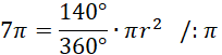 W tym zadaniu musisz obliczyć promień koła, którego wycinek wyznaczony przez kąt α = 140 ͦ ma pole P=7π.
