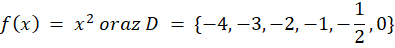 Oblicz wartość funkcji dla podanej dziedziny;