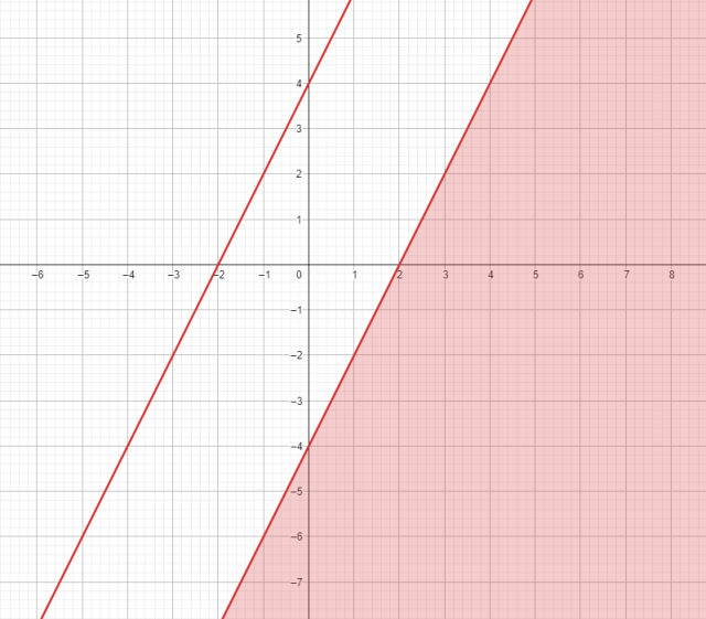 Jeżeli część wspólna z drugą nierówność ma być półpłaszczyzną to druga nierówność musi wyznaczać obszar zawierający się w obszarze wyznaczamy przez podaną prostą lub obszar zawierający obszar wyznaczony przed podaną