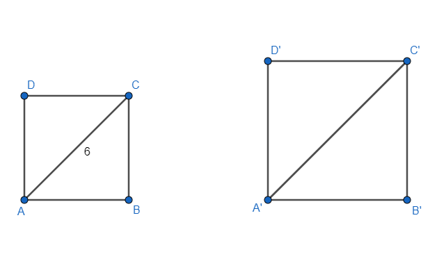 Kwadrat ABCD ma przekątną o długości 6 i jest podobny do kwadratu A'B'C'D' w skali k = 3. Musisz obliczyć pole kwadratu A'B'C'D'.