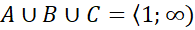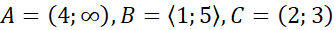 Naszkicuj przedziały zbiorów A, B i C. Odczytaj z nich podane relacje między zbiorami. Suma zbiorów oznacza, że sumujemy wszystkie wyrazy z dwóch zbiorów i zapisujemy w formie jednego. Część wspólna oznacza, że z obu zbiorów musimy wybrać jedynie te wyrazy, które się pokrywają w dwóch analizowanych zbiorach.