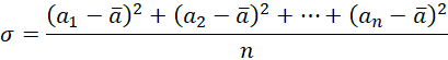 We wzorze n to liczba pomiarów, „a” to pomiar, natomiast