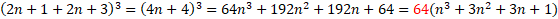 , co oznacza n należy do zbioru liczb całkowitych. Teraz zsumuj te dwie liczby, a wynik podnieś do sześcianu. Zauważ, że możesz wyciągnąć 64 przed nawias. Pamiętaj, że jeśli choć jedna liczba w iloczynie liczb jest podzielna przez 64, to cały iloczyn jest podzielny przez 64.