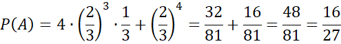 Wyznacz prawdopodobieństwo tego, że co najmniej trzy reszki, jeśli rzucamy cztery razy niesymetryczną monetą, dla której prawdopodobieństwo wypadnięcia orła jest równe