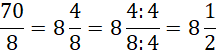 70 : 8 = 8 r 4