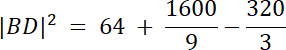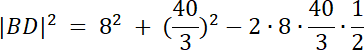 |BD|2 = 82 + (40/3)2–2∙8∙5∙cos 60°