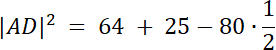 |AD|2 = 82 + 52–2∙8∙5∙cos 60°