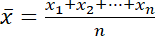 , gdzie x1, x2, …, xn to kolejne liczby, natomiast n oznacza ilość liczb w danym zestawie danych.