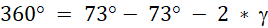 Kąt b i kąt o mierze 73° to kąty wierzchołkowe, a więc mają taką samą miarę. Suma wszystkich kątów powinna wynosić 360°, ponieważ tworzą one kąt pełny. Od 360° musisz odjąć miarę kąta b i kąta 73°, a następnie podzielić wynik na dwa, ponieważ kąt g będzie miał taką samą miarę, jak kąt naprzeciwko niego (kąty wierzchołkowe).