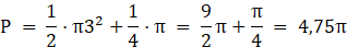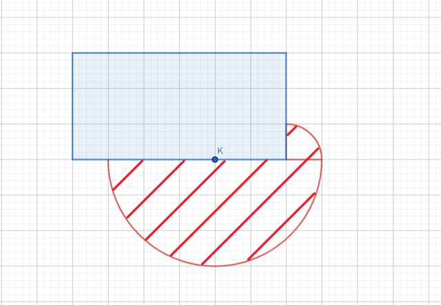Koza dałaby radę zatoczyć koło o promieniu 3 m wokół punktu K, w którym jest uwiązana, ale zatrzymuje ją budynek. Jeśli jest uwiązana w zaznaczonym na rysunku punkcie na ścianie budynku, to da radę zjeść trawę z powierzchni koła o promieniu 3 m i zbliżając się do prawej strony, napotka ścianę budynku z rogiem. 2 metry łańcucha naprężą się wokół ściany i pozwolą jeszcze na zatoczenie koła o promieniu 1 m.
