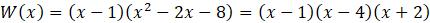 Aby rozwiązać równanie, oznacz jego lewą stronę przez W(x). Następnie zauważ, że rozwiązaniem otrzymanego wielomianu jest x = 1. Podziel wielomian przez dwumian x - 1 za pomocą schematu Hornera, dzięki czemu możesz go następnie zapisać w postaci iloczynowej. Zapisz iloczyn w postaci alternatywy trzech równań liniowych, z których każde rozwiąż niezależnie. Zsumuj otrzymane rozwiązania do jednego zbioru.