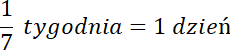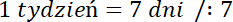 1 tydzień to 7 dni. Przekształć to równanie, aby otrzymać szukaną wartość.