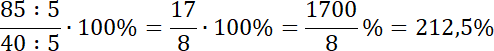 Musisz obliczyć, ile procent liczby 40 stanowi 85.