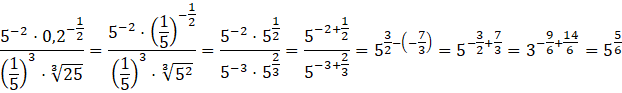 Zapisz potęgi tak, aby miały w podstawie taka sama liczbę równą 5, a następnie skorzystaj z praw na potęgach: