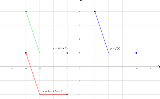 to wykres funkcji f z rysunku przesunięty o 5 jednostek w lewo i 3 jednostki w dół.