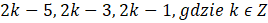 Wynotuj trzy kolejne liczby nieparzyste, z których największą jest 2k-1.
