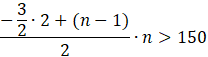 Najpierw do wzoru na sumę wyrazów ciąg wprowadź dane i zapisz go w formie nierówności z określoną w poleceniu liczbą. Następnie doprowadź nierówność do najprostszej postaci i odczytaj